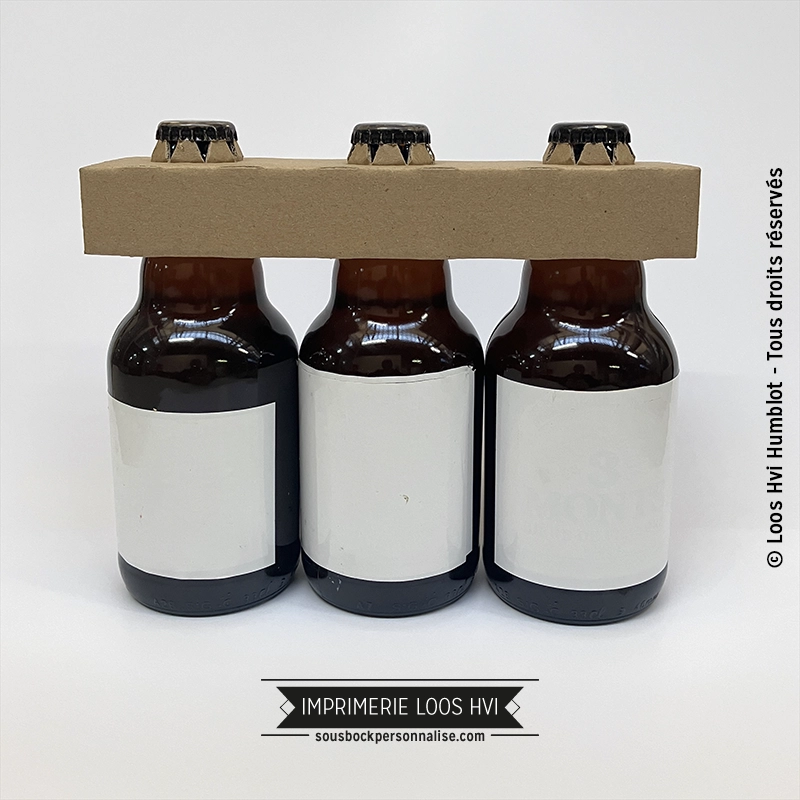 Optez pour un emballage à la fois pratique et esthétique avec notre pack de bouteilles en carton ondulé, conçu pour transporter et mettre en valeur trois ou quatre bouteilles (Long neck Vichy Apo ou steinie) de bière. Sa structure robuste et son design classique en font un choix idéal pour les brasseries artisanales et les points de vente souhaitant une présentation soignée et pratique.